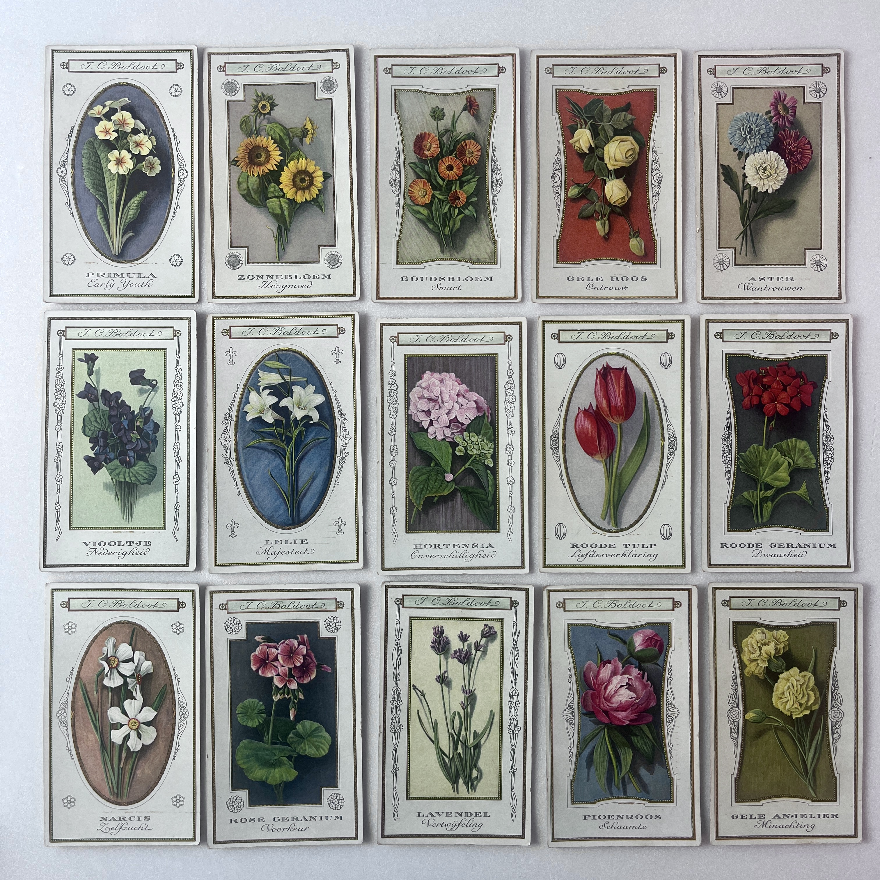 Verzamelkaarten, 'De Taal der Bloemen', 15 stuks, Boldoot-product
