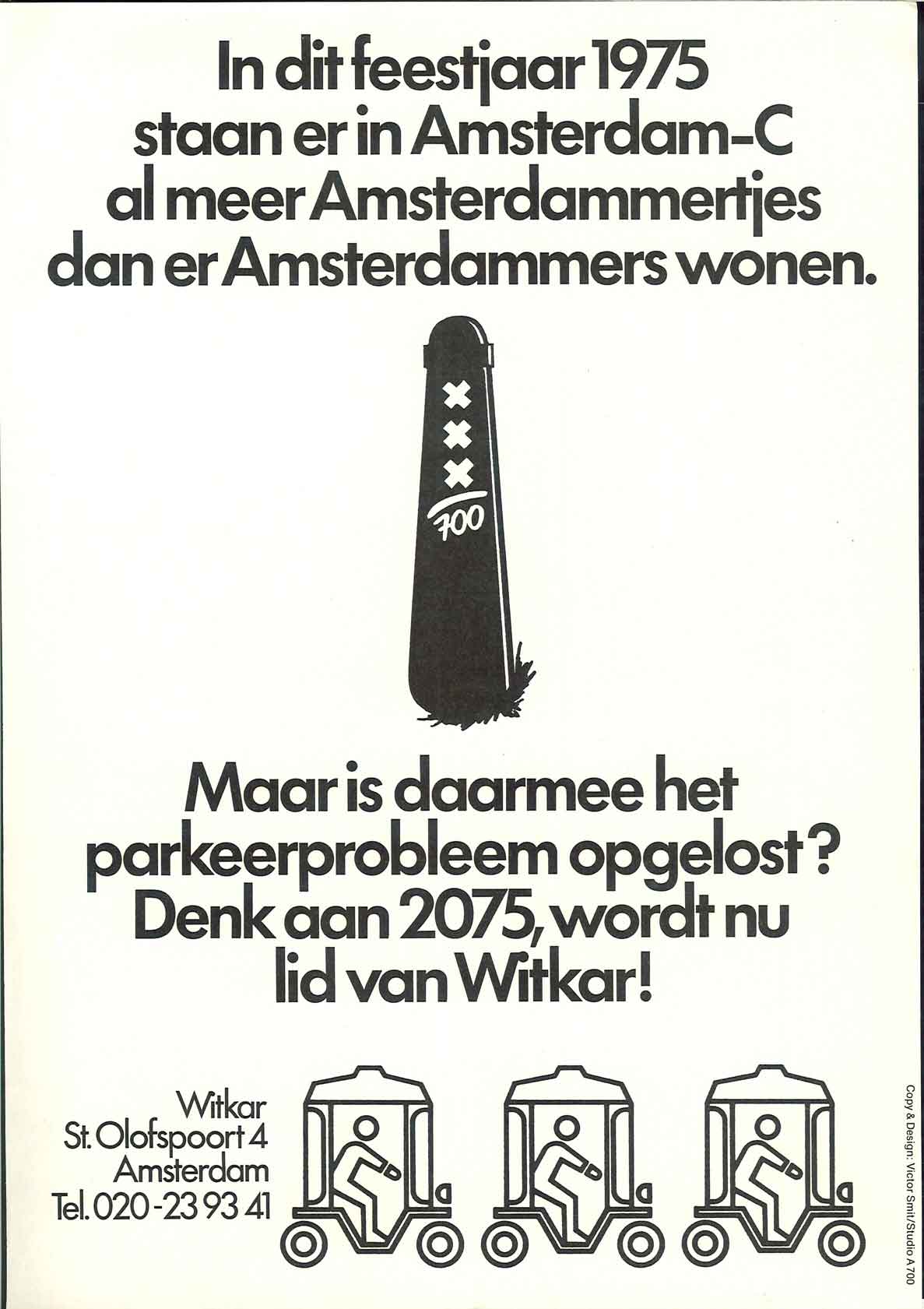 Affiche 'In dit feestjaar 1975 staan er in Amsterdam-C al meer Amsterdammertjes dan er Amsterdammers wonen'