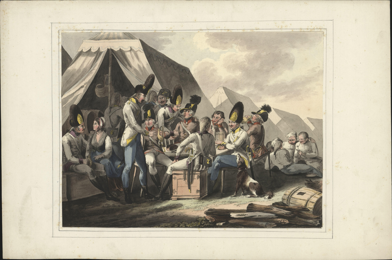 Soldaten ontspannen zich met vrouwelijk bezoek en drank