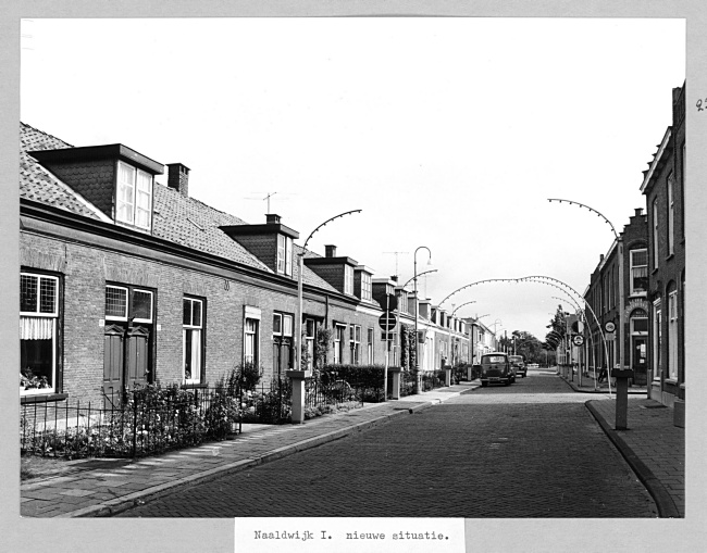 De fotograaf stond ongeveer waar nu nummer 41 is. De gebouwen rechts werden aan het begin van de 20e eeuw gebouwd en staan er nog steeds. Rechts is de Van Tijnstraat (voorheen Korte Rembrandtstraat) met op de hoek een brood- en banketbakkerij. Links staan arbeiderswoningen. In de jaren tachtig is de voorste helft gesloopt voor ...
