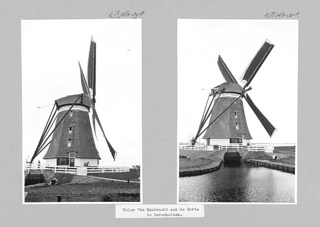 Poldermolen aan de Rottekade 1 en de Rotte. Deze boezemmolen uit 1727 maalde tot 1927 het teveel aan water uit de Eendrachtspolder. Nu ververst de molen het water van de Rotte.