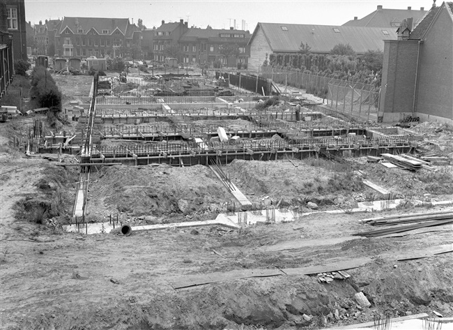 Bouw van viaduct Sint Sebastiaansbrug in Delft, 1962
