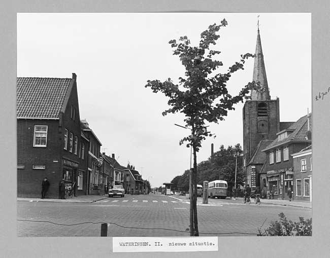 Het Plein gezien vanaf de Heulweg. Rechts is de Pleinkerk (hervormde kerk) aan het Plein 9 en Smederij A.A.J. Lipman.