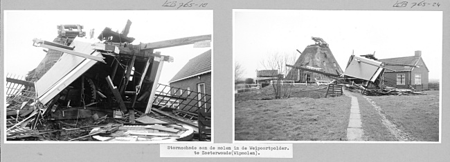 Stormschade aan Grote Molen in Zoeterwoude, 1973