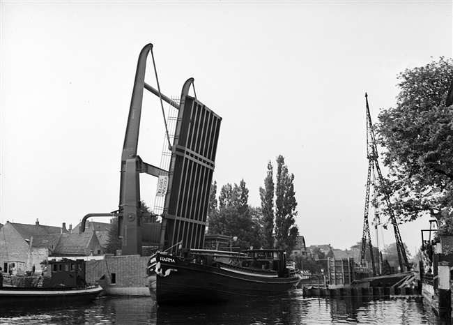Bouw van Alphensebrug in Alphen aan den Rijn, 1955