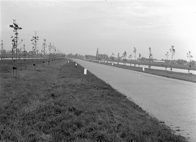 Provinciale weg nr. 29 (huidige N207) met in de verte de kerktoren van Stolwijk.