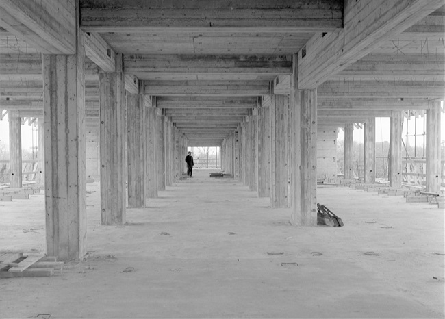 Een doorkijk op de tweede verdieping van het nieuwe provinciehuis aan de Koningskade.