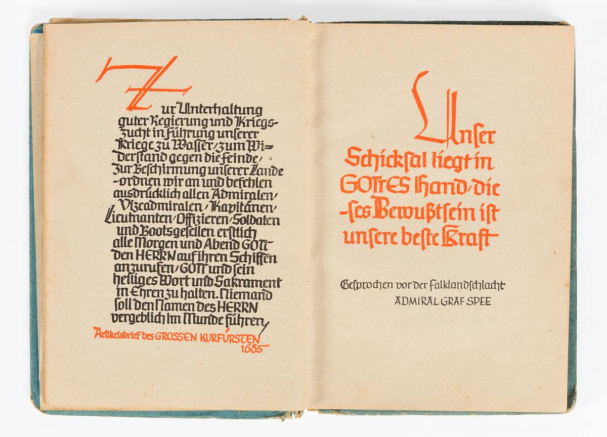 Duits gezangenboek uitgegeven voor gebruik binnen de Kriegsmarine tijdens de Tweede Wereldoorlog. Dergelijke bundels werden gebruikt bij religieuze diensten en bijeenkomsten van bemanningsleden van de Duitse marine. Het exemplaar is achtergelaten bij kustbatterij Dishoek op Walcheren (Zeeland) na de oorlog. Het boek is afkomstig van Ad van Dijk uit Vlissingen.