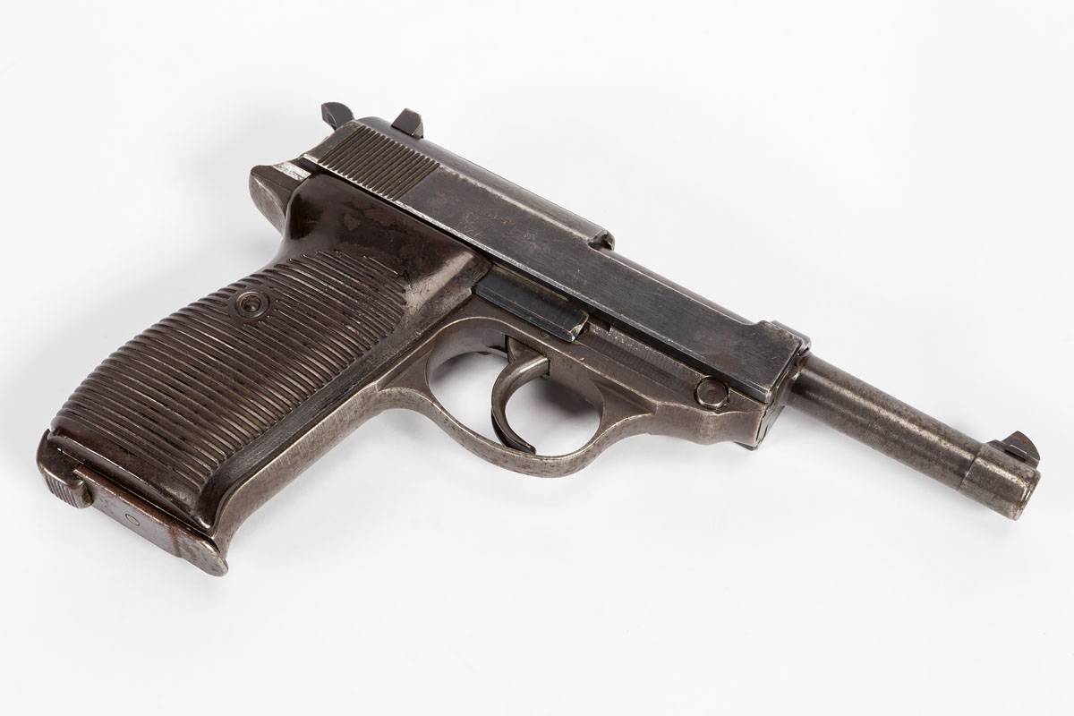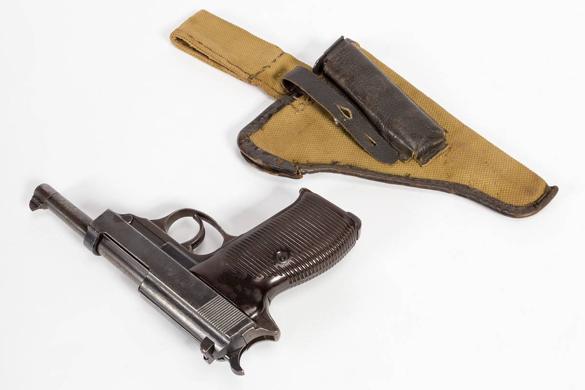 Halfautomatisch centraalvuurpistool van het type Walther P38, kaliber 9 × 19 mm, met bijbehorend holster. Het pistool heeft een magazijncapaciteit van acht patronen en werd standaard gebruikt door Duitse strijdkrachten tijdens de Tweede Wereldoorlog. Dit exemplaar is direct verbonden met een gebeurtenis in maart 1945, waarbij een Duitse minionderzeeër (type Biber) aanspoelde op het strand ...