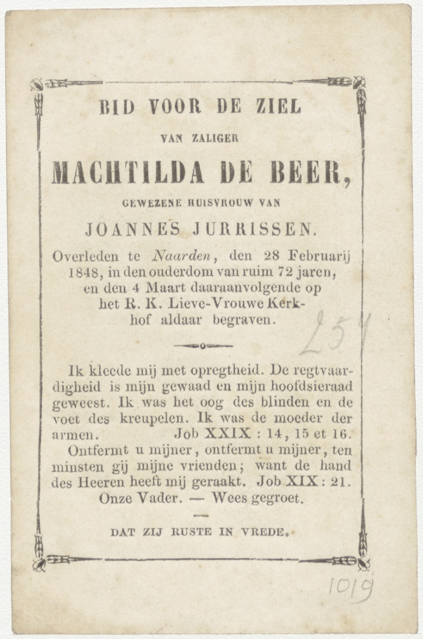 Zuivering van Maria, tempel van Jeruzalem, kz. Bid voor ziel De Beer (+1848);Naarden