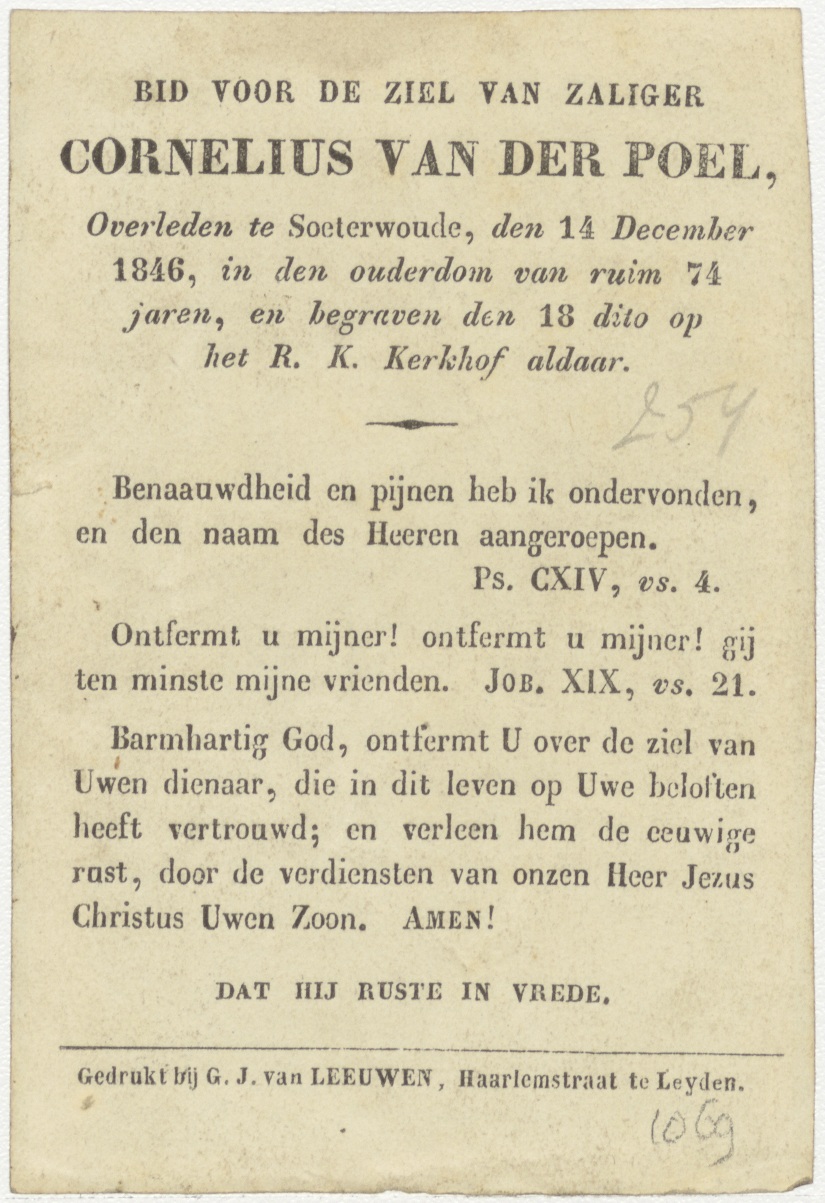Symbolische voorstelling van de Onschuld, kz. Bid voor ziel Van der Poel (+1846);Zoeterwoude