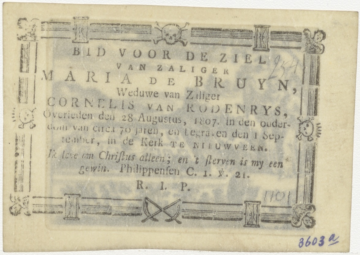 Engel toont aan Joannes op Patmos het nieuwe Jeruzalem, kz. Bid voor ziel De Bruyn (+1807);Nieuwveen