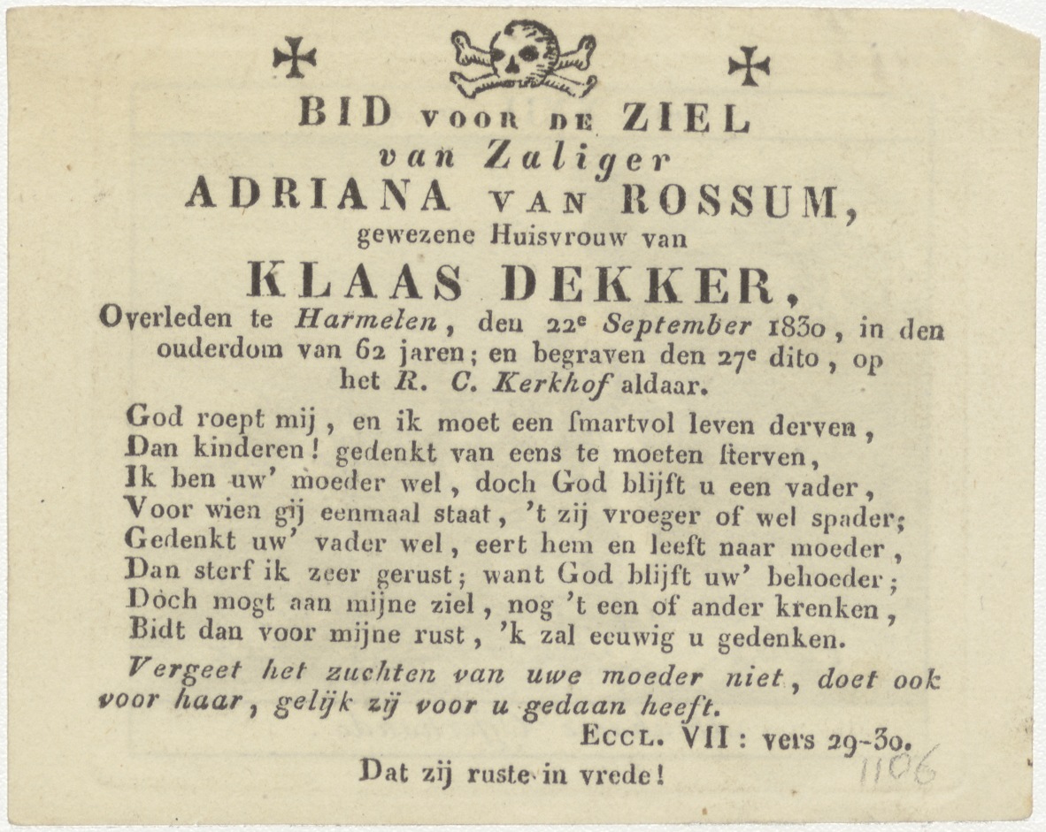Offer van Isaak door Abraham, kz. Bid voor ziel Van Rossum (+1830);Harmelen