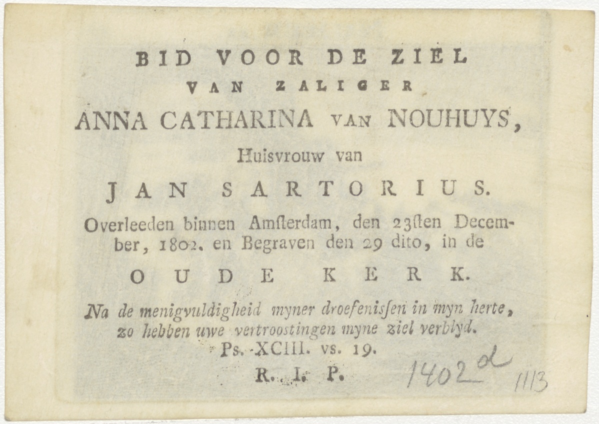 Bikam en de ezelin en de engel, kz. Bid voor ziel Nouhuys (+1802);Amsterdam