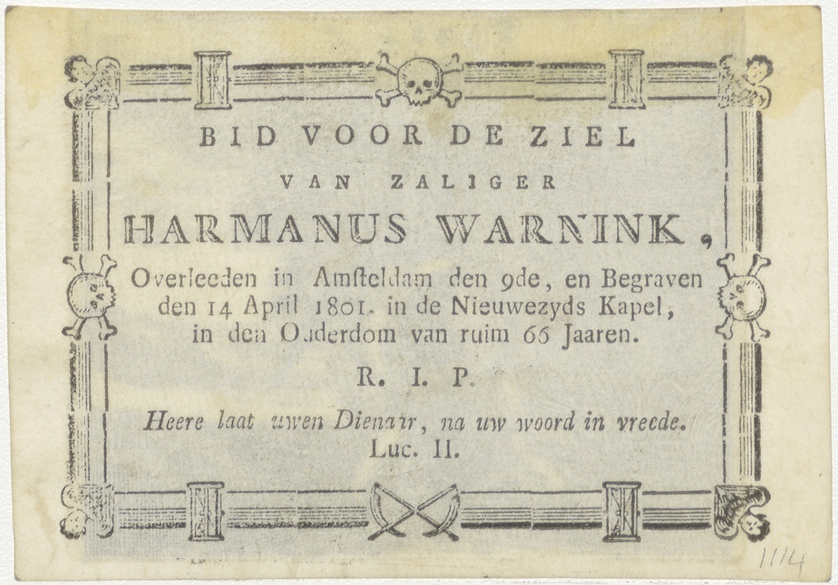 Tobias trekt de vis uit het water, kz. Bid voor ziel Warnink (+1801);Amsterdam;Nieuwe Zijdskapel