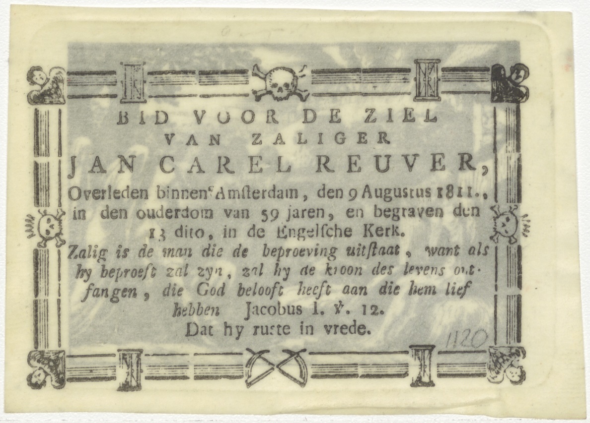 Job bespot door zijn vrienden, kz. Bid voor ziel Reuver (+1811);Amsterdam;Engelsche Kerk