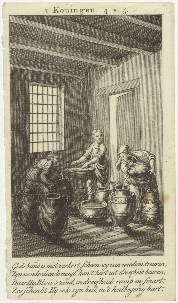 Op bevel van Elisa vullen de vrouwen haar zonen de vaten met olie