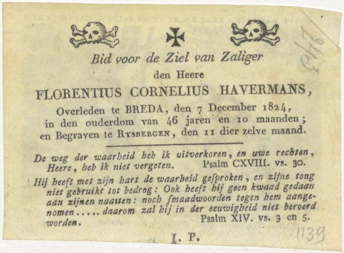 Bileam en de ezelin en de Engel des Heren, kz. Bid voor ziel Havermans (+1824);Rijsbergen