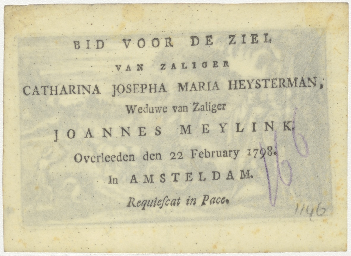 De verbondsark naar de tempel gebracht, kz. Bid voor ziel Meylink (+1798);Amsterdam
