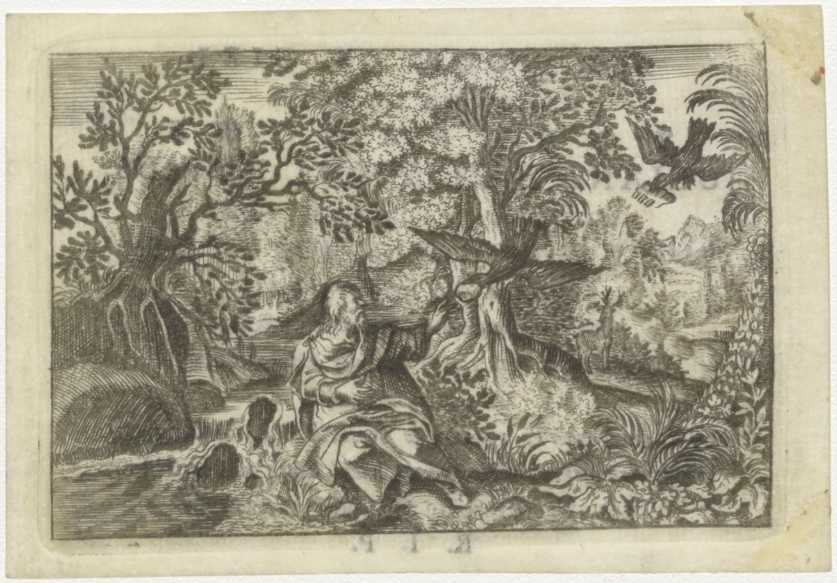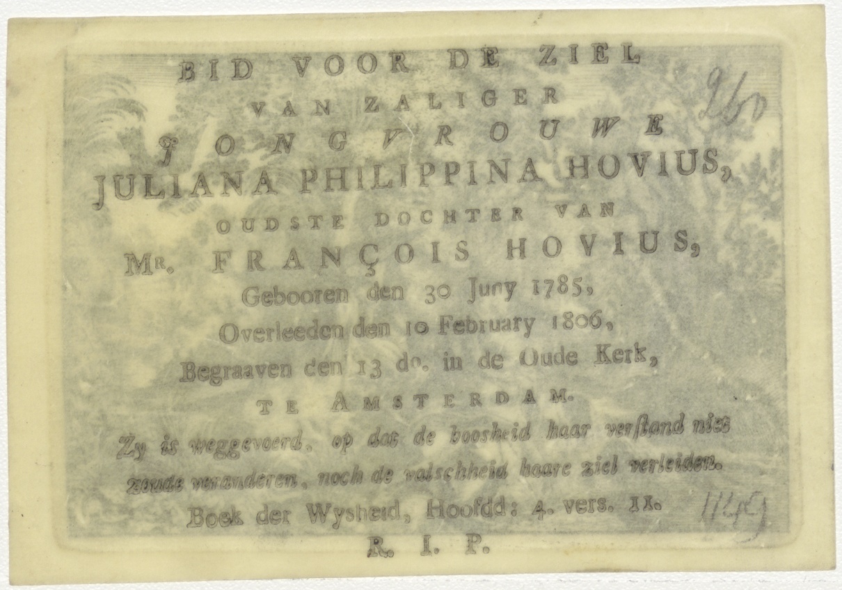 Elias door de raven gevoed, kz. Bid voor ziel Hovius (+1785);Oude Kerk;Amsterdam