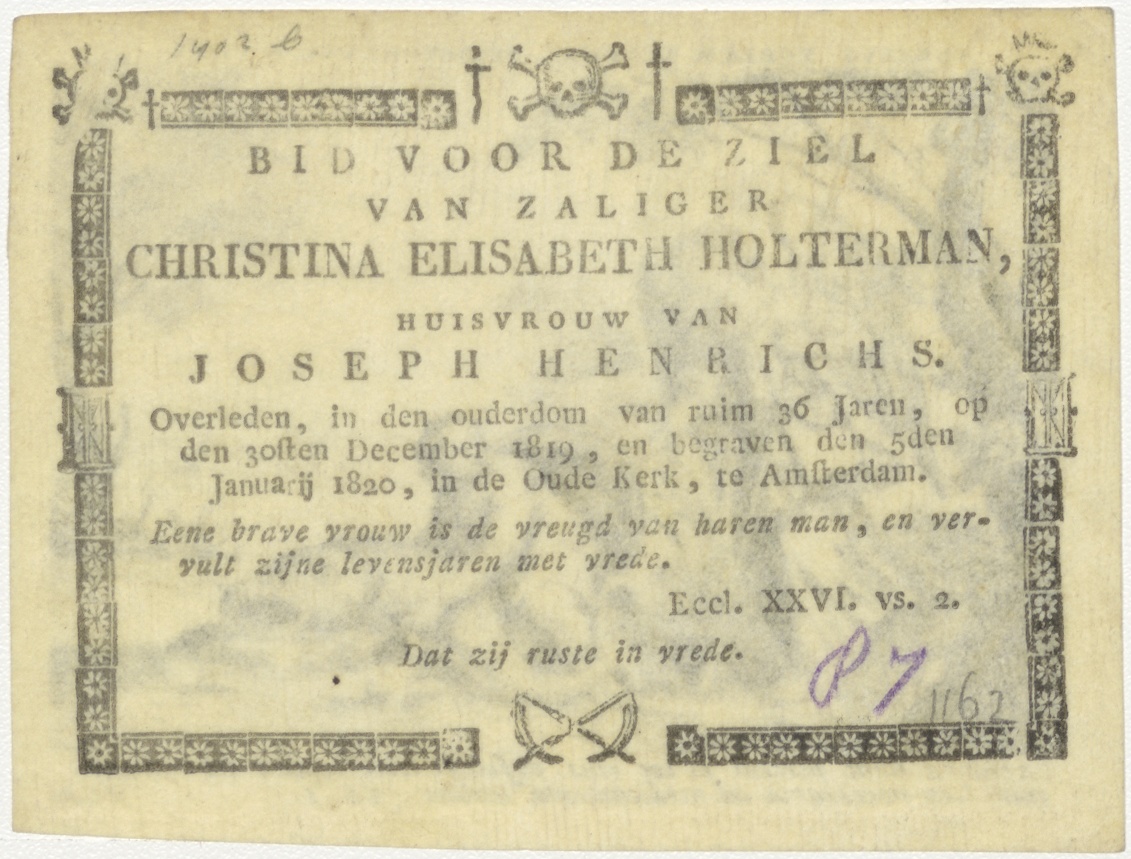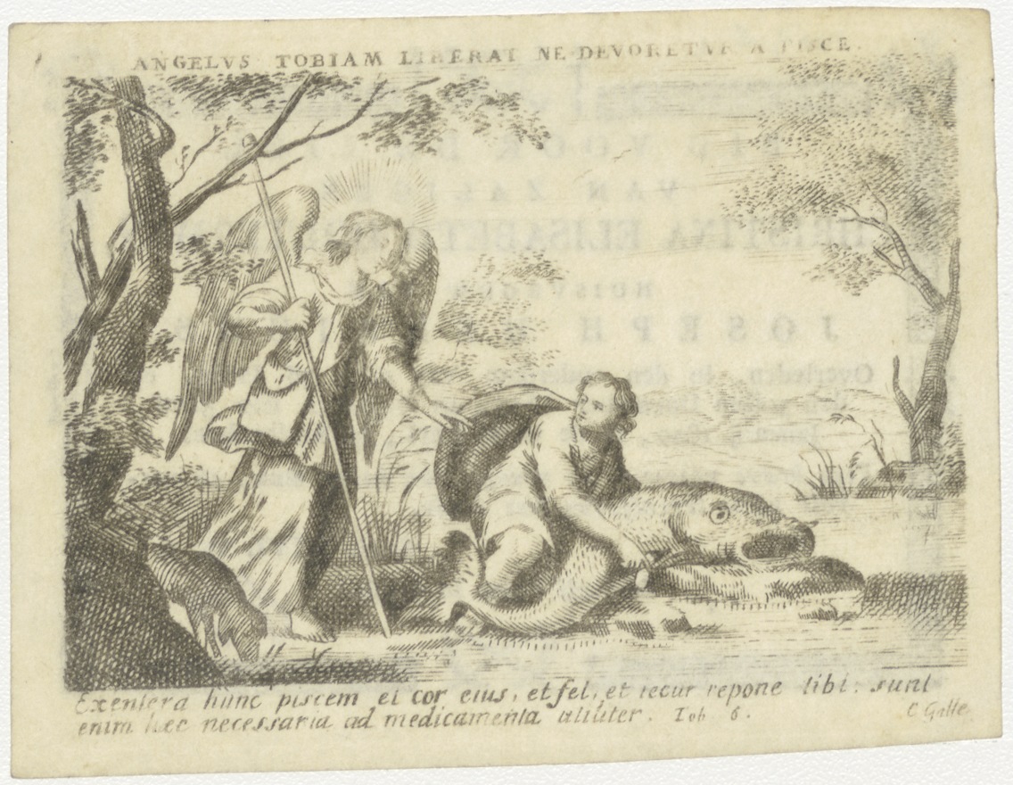 Tobias trekt de visch uit het water, kz. Bid voor ziel Wolterman (+1819);Amsterdam