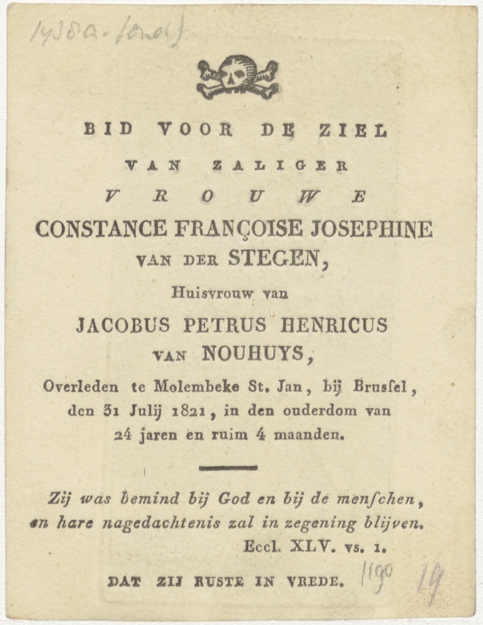 H. Theresia van Avila, kz. Bid voor ziel Van Nouhuys-van der Stegen (+1821) Molembeke St. Jan (België)