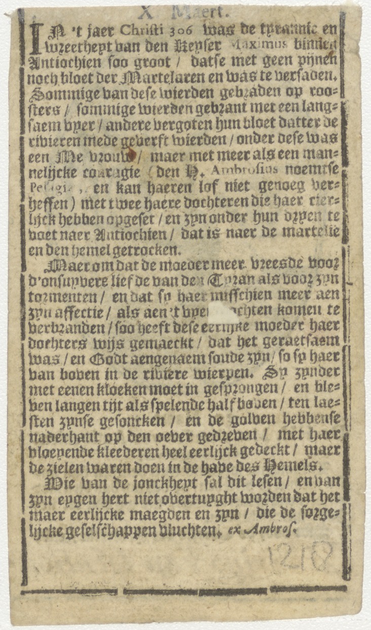 HH. Martelaressen van Antiochië, kz. levensbeschrijving dezer martelaressen