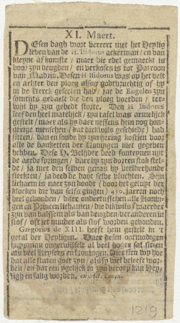 H. Isidorus, kz. levensbeschrijving van St. Isidorus