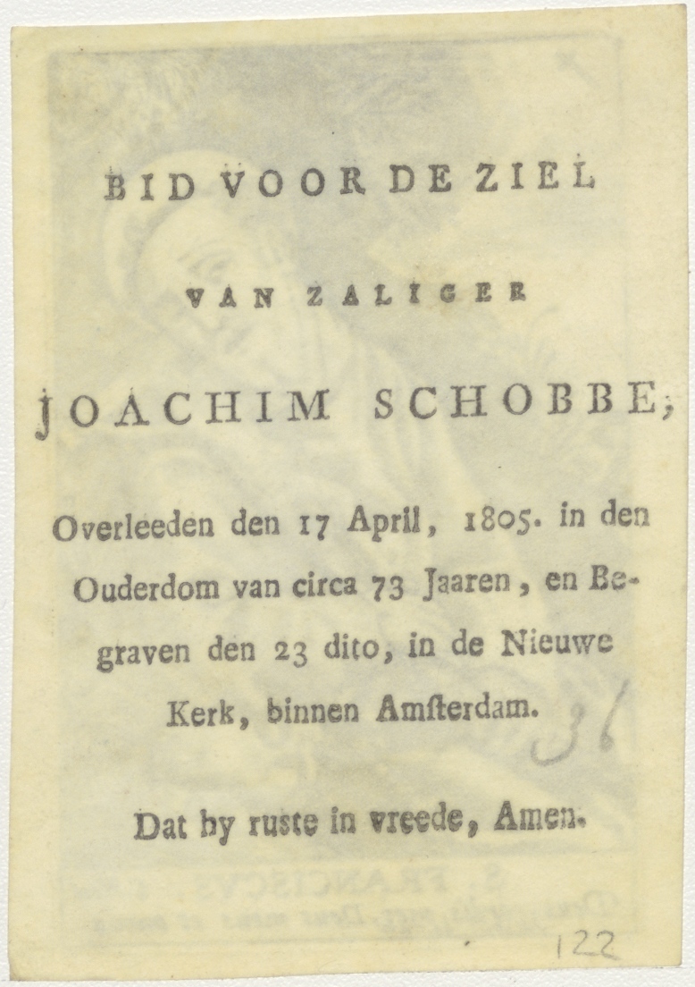 H. Franciscus, kz. Bid voor ziel Joachim Schobbe (+1805);Amsterdam