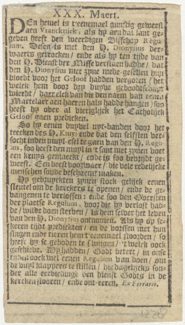 H. Regulus, bisschop, kz. levensbeschrijving van St. Regulus