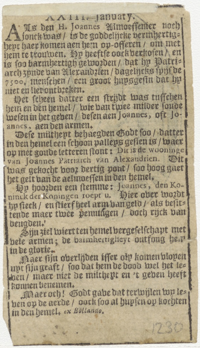 H. Joannes Eelemosynarius, aalmoezenier, kz. levensbeschrijving