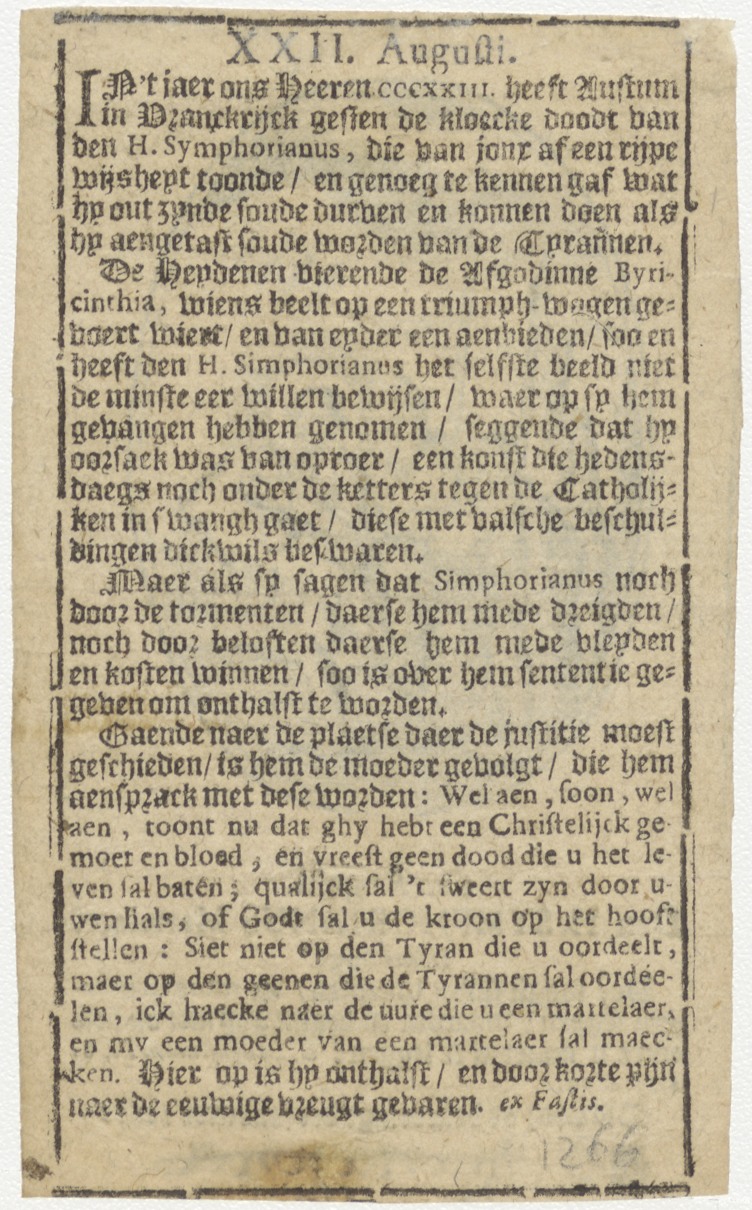 H. Symphorianus, kz. levensbeschrijving
