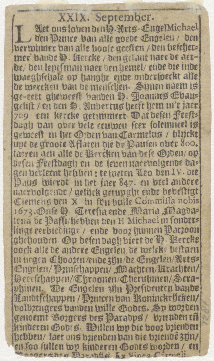 H. Michaël, aartsengel, kz. gedrukte tekst