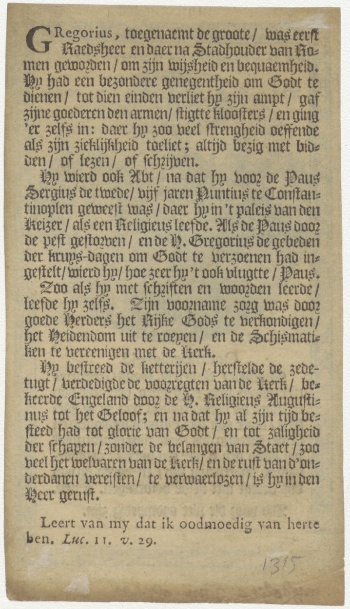 H. Gregorius de Grote, paus, kz. levensbeschrijving van Gregorius de Grote