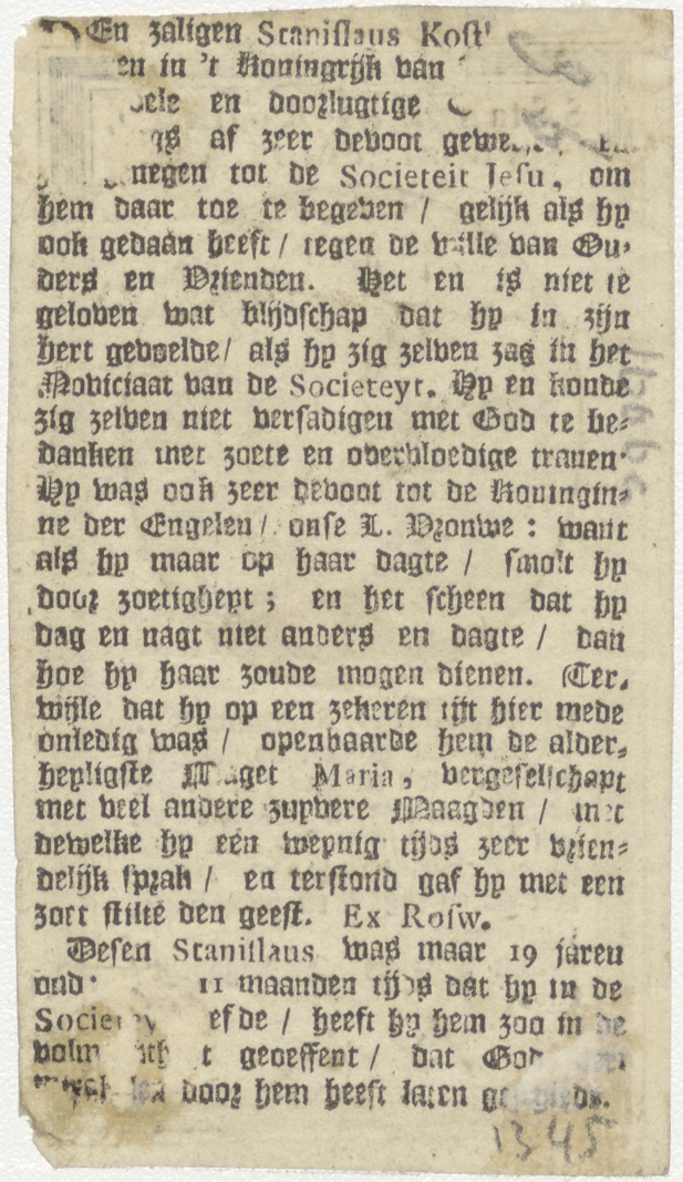 H. Stanislaus Kostka, kz. levensbeschrijving van H. Stanislaus Kostka