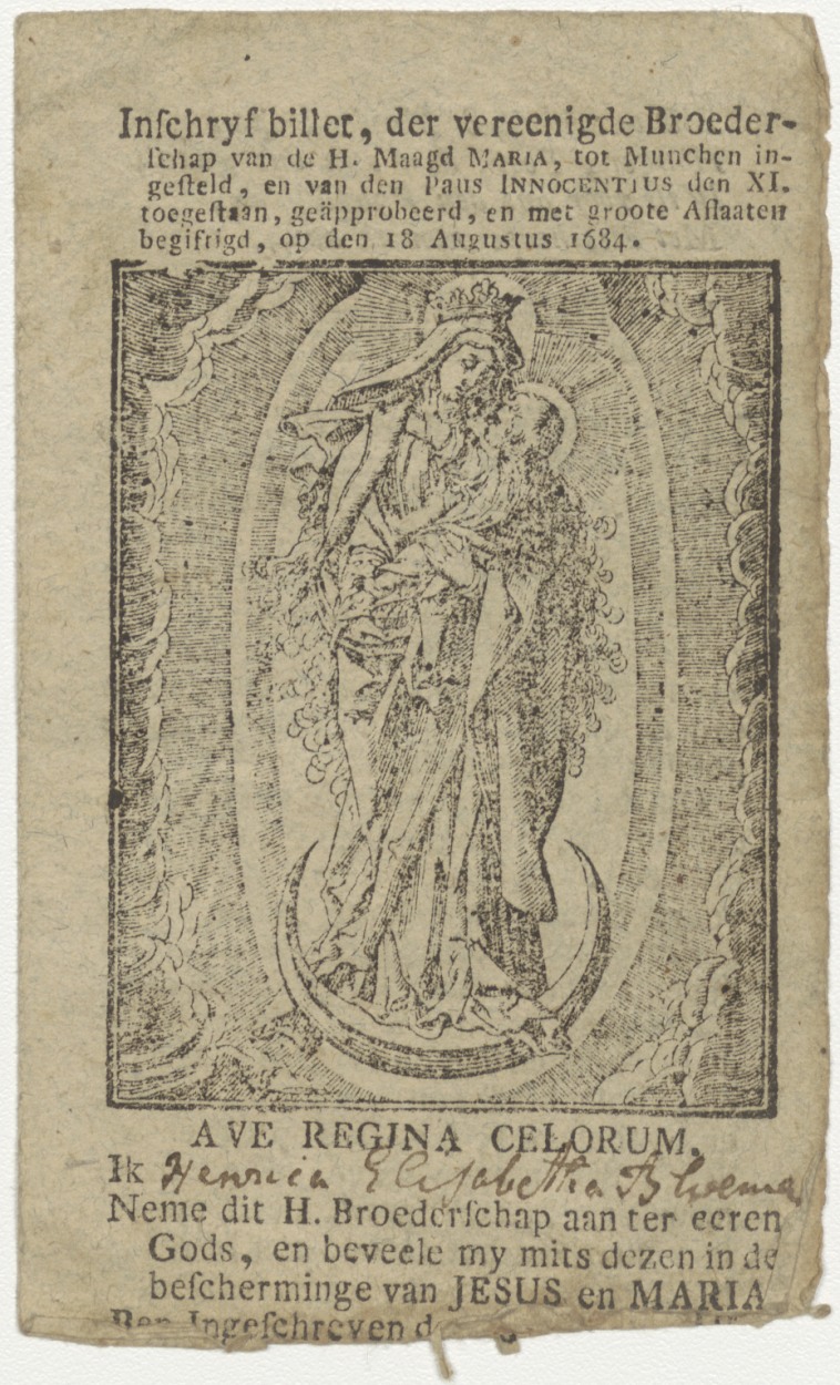 Maria met Kind op maansikkel, kz. gedrukte tekst