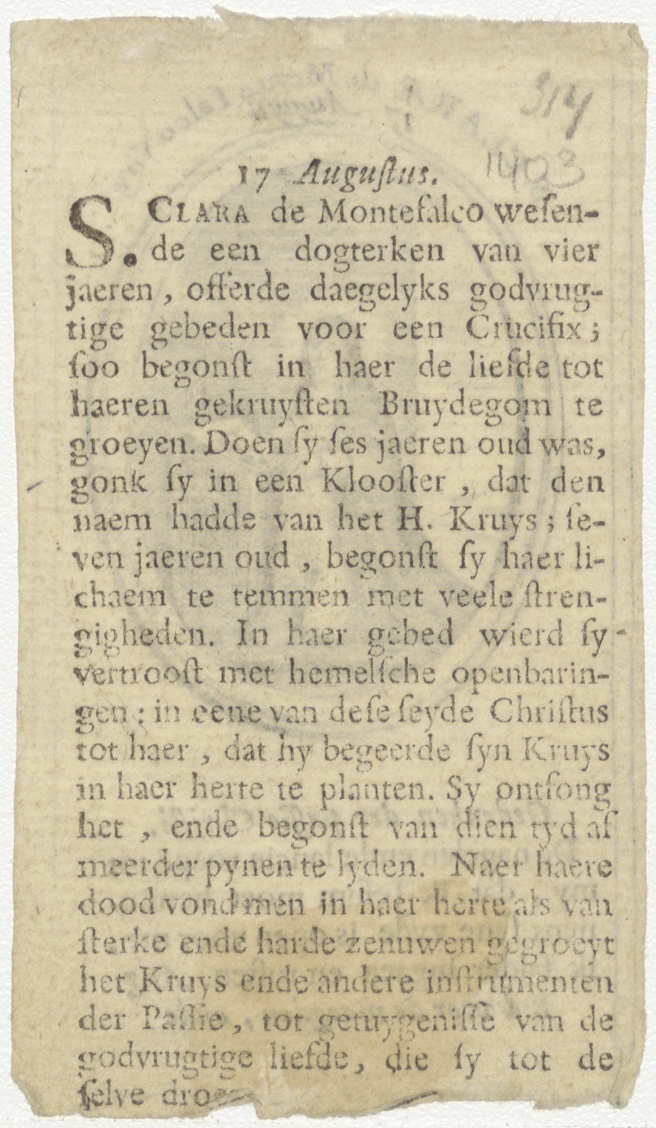 H. Clara de Montefalco, kz. levensbeschrijving