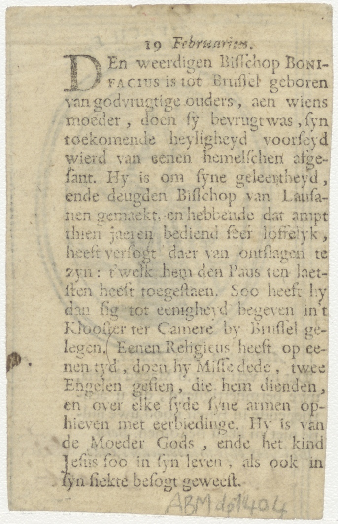 H. Bonifacius, geboren te Brussel, niet de beroemde apostel van Duitsland, kz. levensbeschrijving