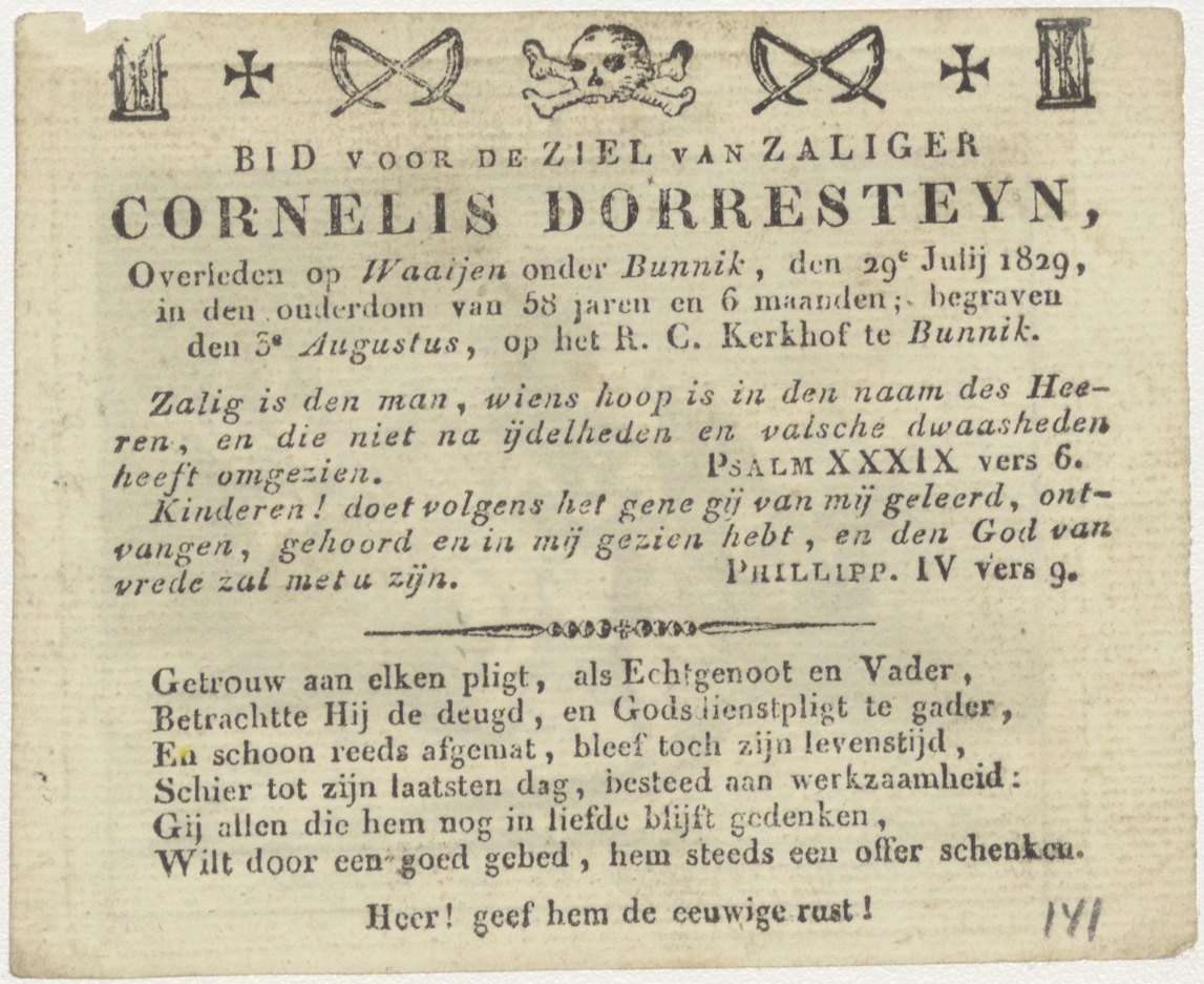 Christus in de woestijn, kz. Bid voor ziel Cornelis Dorresteyn (+1829);Bunnik