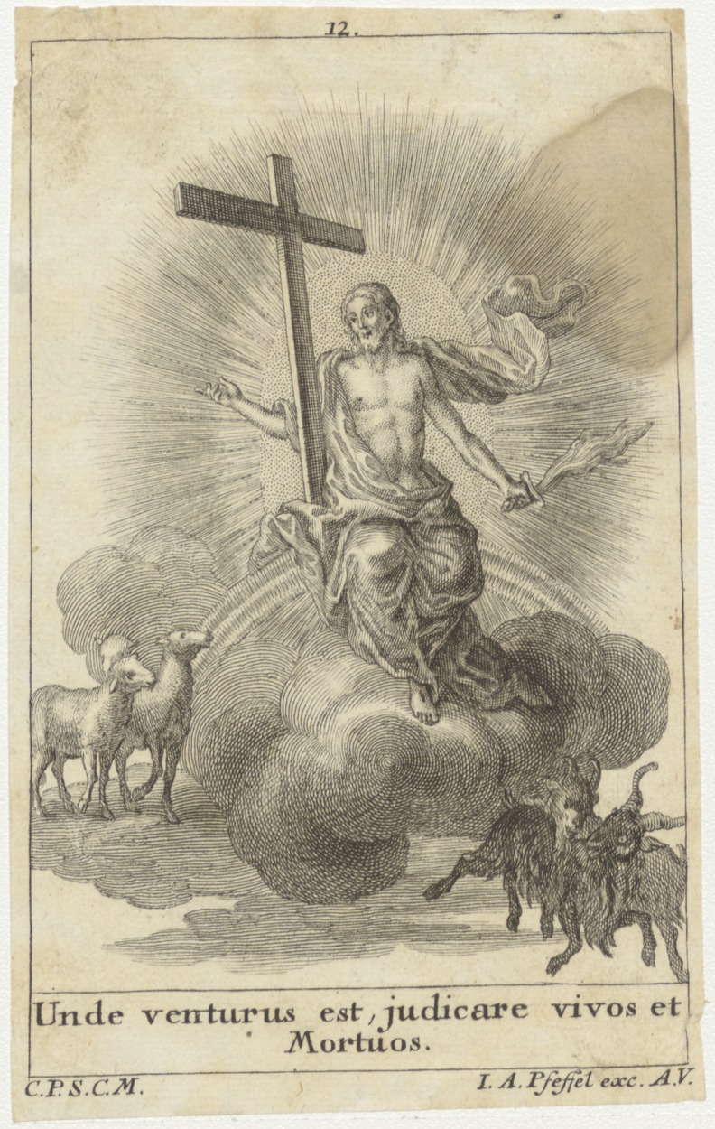 Laastste Oordeel (Christus op wolken met kruis en schapen en bokken)