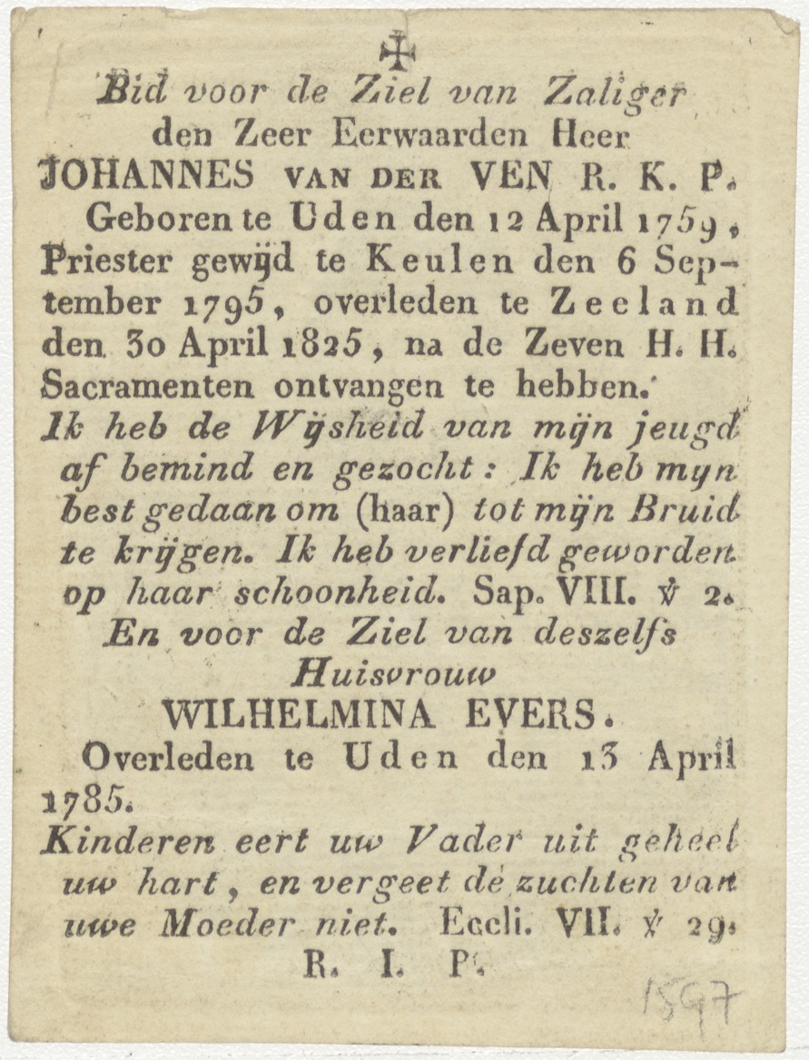 H. Elisabeth van Hongarije, kz. Religieus;bid voor ziel Johannes van der Ven (1825), Zeeland, priester, en bid voor ziel Wilhelmina Evers (+1785), huisvrouw