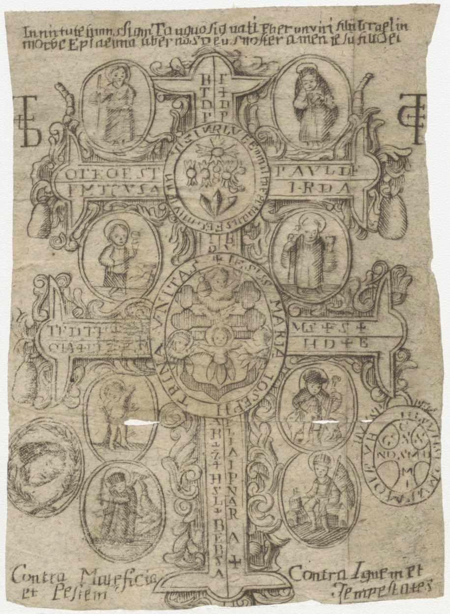 Caravacakruis, met afbeeldingen van diverse heiligen, enz.