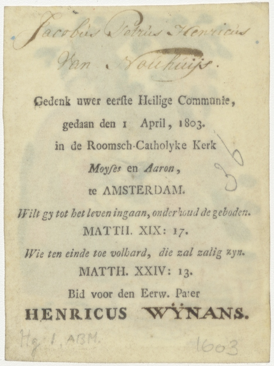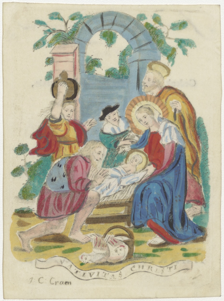 Aanbidding der herders, ingekleurd, kz. H. Communie Nouhuys;1803;Mozes en Aaron
