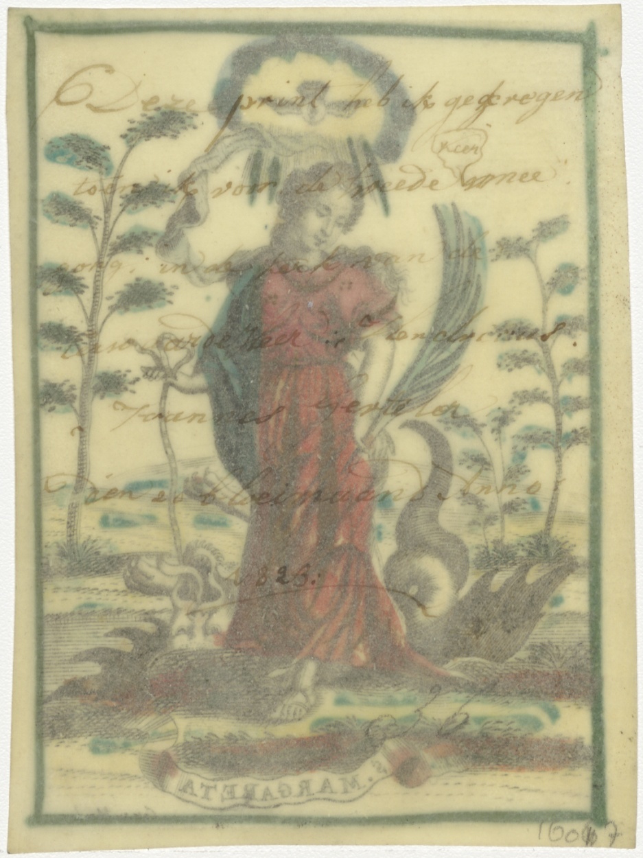 H. Margareta (Margaretha), ingekleurd, kz. Beloning;1823;van pastoor Joannes Gerteler