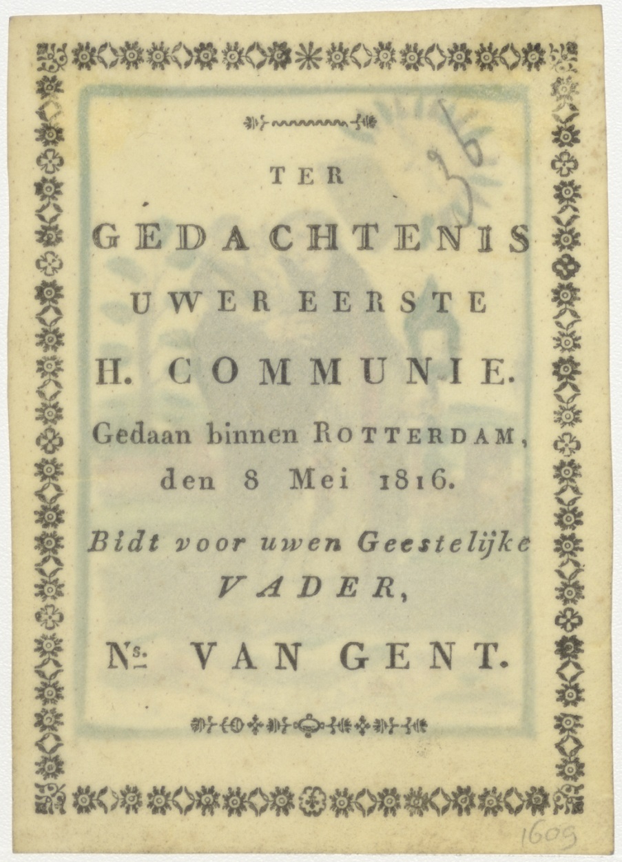 H. Hyacintus, ingekleurd, kz. H. Communie;1816;pastoor Van Gent;Rotterdam