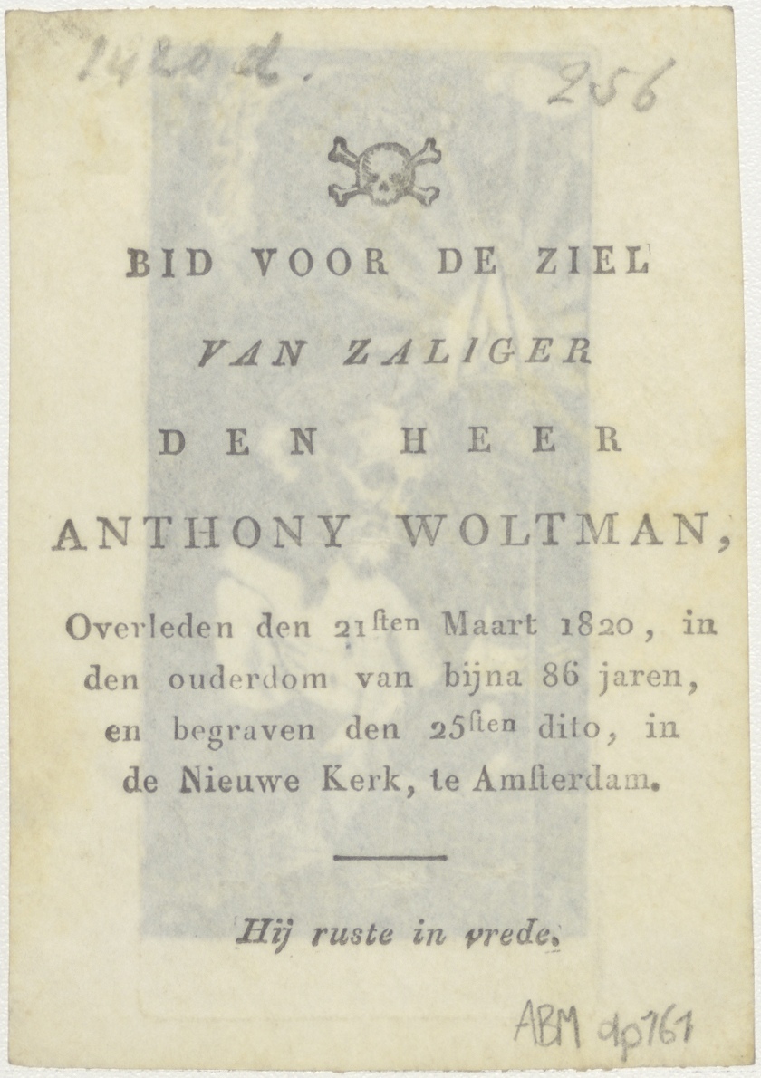 H. Franciscus, kz. Bid voor ziel Anthony Woltman (+1820);Amsterdam