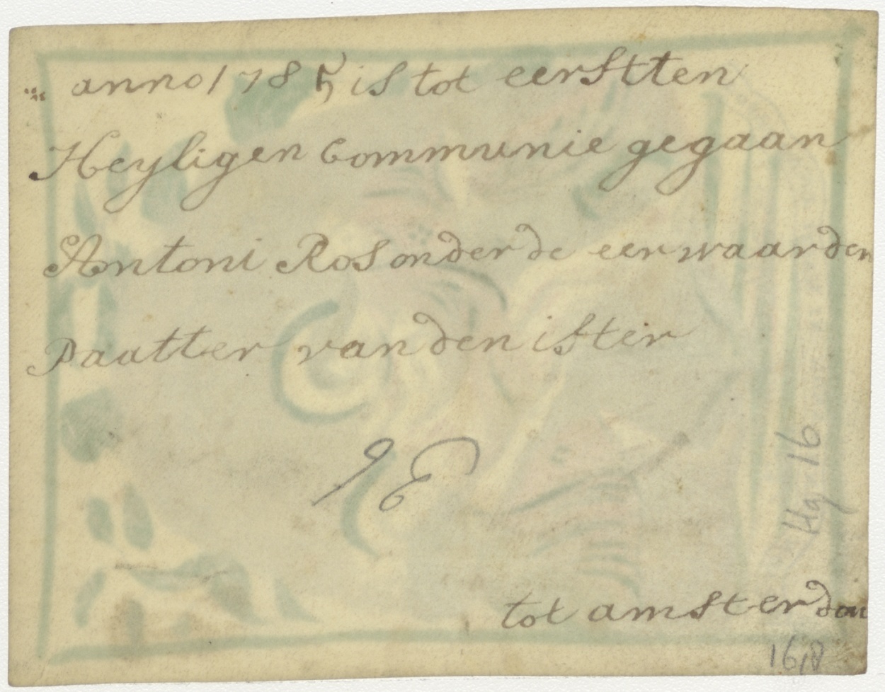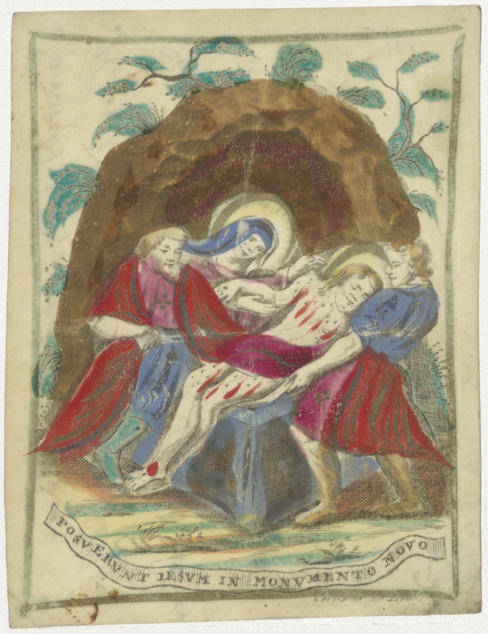 Graflegging van Christus, ingekleurd, kz. H. Communie;1785;pastoor van den Ister