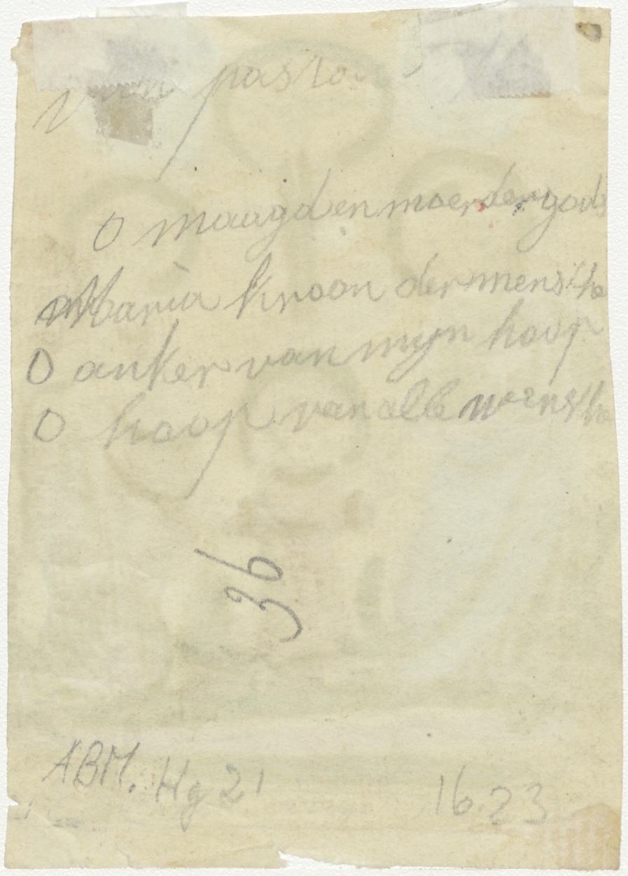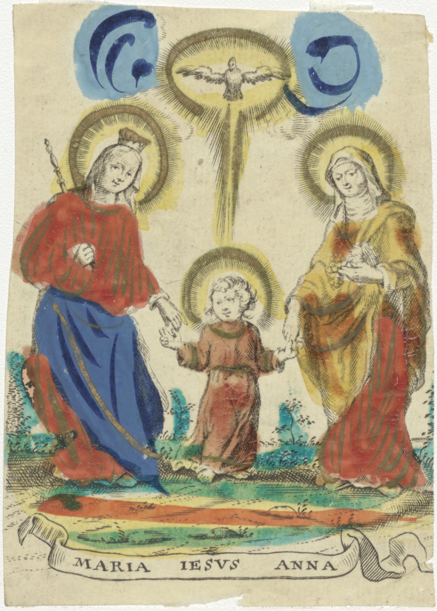 Maria, Jezus, Anna, ingekleurd, kz. tekst