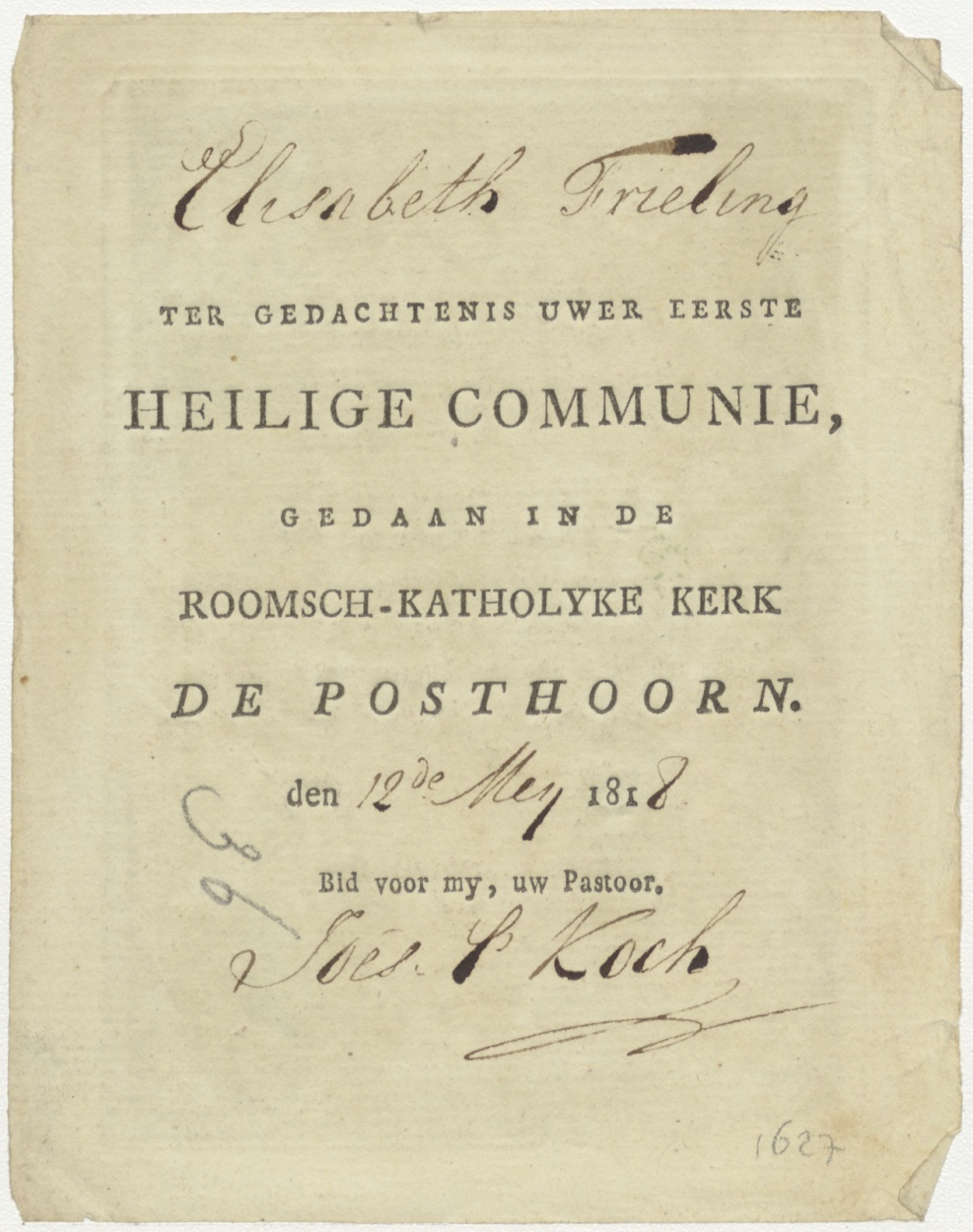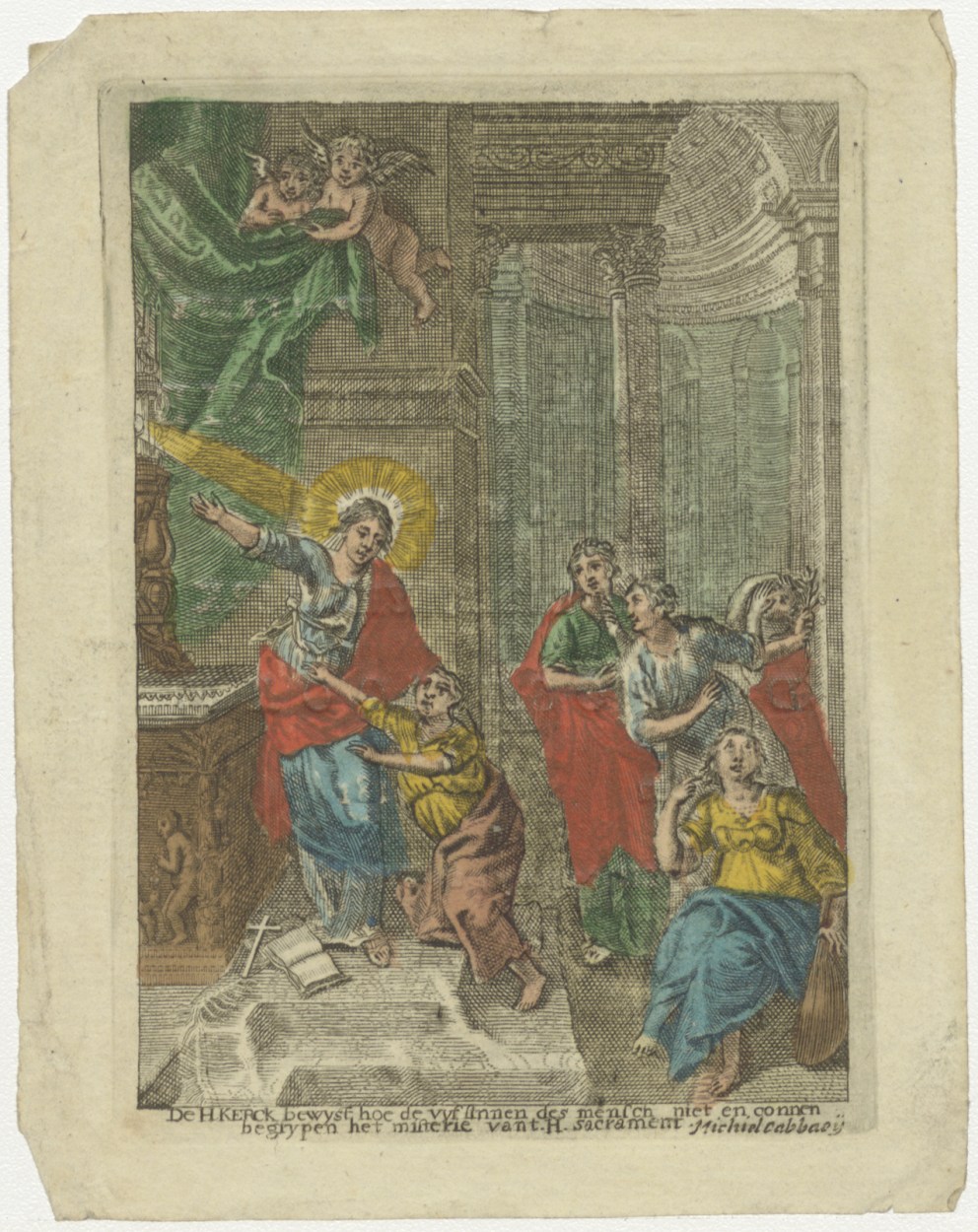 Mysterie van het H. Sacrament, ingekleurd, kz. H. Communie Elisabeth Frieling;1818
