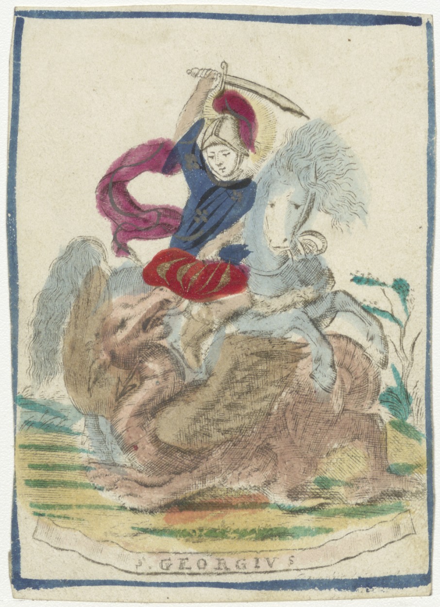 H. George (St. Joris), ingekleurd, kz. Wesscherwal